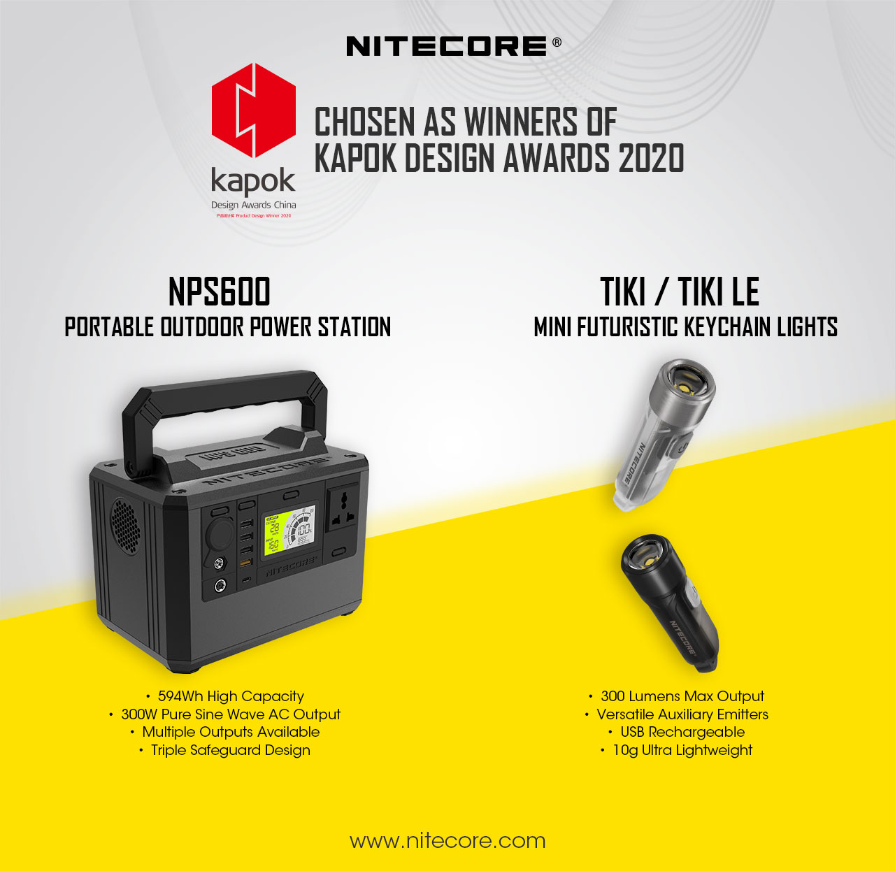 NITECORE NPS600 and TIKI/TIKI LE Awarded as Product Design Winners 2020, kapok Design Awards