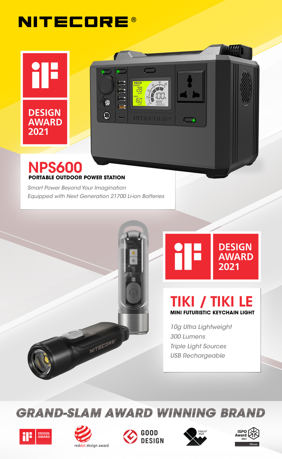 NITECORE NPS600 and TIKI/TIKI LE Awarded as Winners of iF Design Award 2021