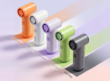 | NEF01 Lite | 93g (3.28 oz) | 10m/s (22 mph) | 20,000 RPM | 2,600mAh | 11h | Slide Switch Handheld / Desktop | Music Festivals Trekking Short Trips |